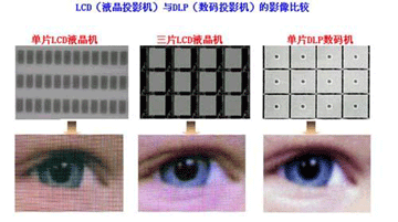LCD投影机的技术是透射式投影技术,目前最为成熟。投影画面色彩还原真实鲜艳,色彩饱和度高,光利用效率很高,LCD 投影机比用相同瓦数光源灯的DLP投影机有更高的ANSI流明光输出,目前市场高流明的投影机主要以LCD投影机为主。它的缺点是黑色层次表现不是很好,对比度一般都在500:1左右徘徊,投影画面的像素结构可以明显看到。