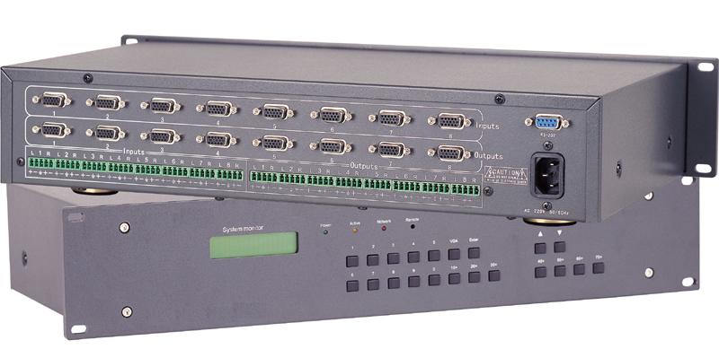 - 8路VGA电脑信号输入,1/2/4/8路VGA电脑信号矩阵输出