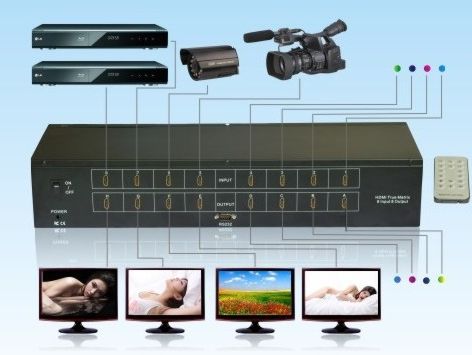 支持2/4/8路HDMI视频输入,2/4/8路HDMI输出与及嵌入式多通道数字音频信号的交叉切换。